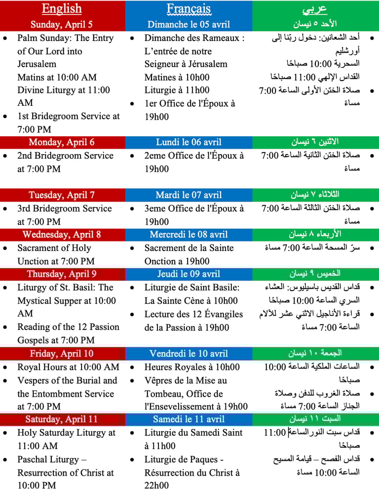 • القداس الإلهي: الساعة 11:00 صباحًا
